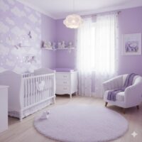 Màu tím kết hợp với màu trắng mang đến không gian thơ mộng, nhẹ nhàng cho các bé gái.